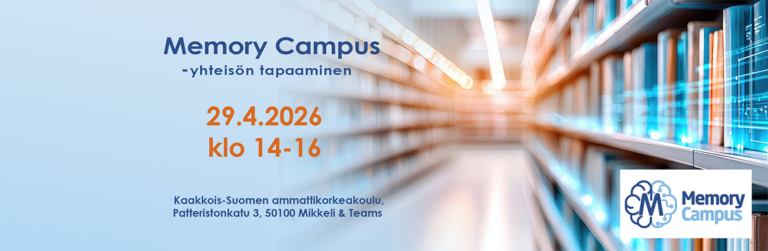 Tervetuloa Memory Campus -yhteisön tapaamiseen keskiviikkona 29.4.2026! Ohjelmassa on keskustelua ÄlyTeko-hankkeen toteuttamasta tekoälyn osaamistarvekartoituksesta ja tulevista tekoälykoulutuksista, uusien jäsenten esittäytymiset sekä tutustuminen ETKOT-hankkeen toteuttamiin tekoälyn vastuullisuussuosituksiin sekä vastuullisuuden ekosysteemin. Lisäksi luvassa on Tiedon huoltovarmuudella turvatumpi tulevaisuus -hankkeen esittely. Hanke avaa näkökulmia yritysten ja arkistojen tiedon luotettavuuden, säilyvyyden ja saatavuuden varmistamiseen myös häiriö- ja poikkeustilanteissa. Aika: 29.4.2026 klo 14-16Paikka: Kaakkois-Suomen ammattikorkeakoulu, Patteristonkatu